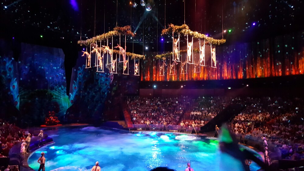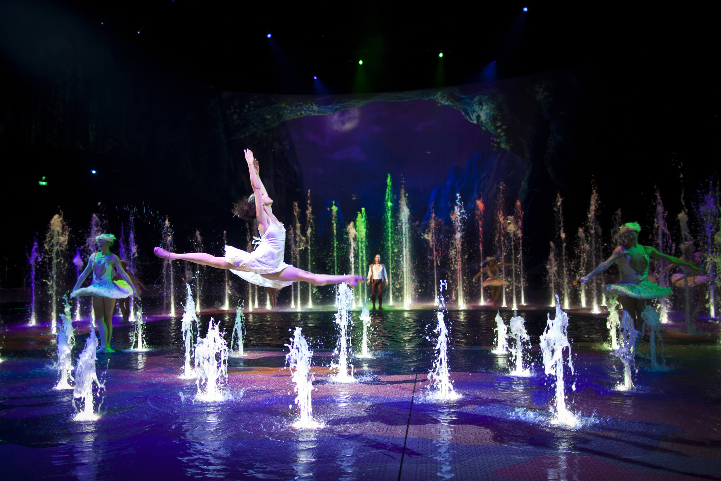 以劇本、演員、音樂、服裝、舞臺(tái)舞美設(shè)計(jì)、燈光等舞臺(tái)表演藝術(shù)的鋪排,結(jié)合噴泉、水幕、激光、燈光、焰火、水霧、投影、舞臺(tái)機(jī)械等科技手段的綜合運(yùn)用,將演員、音樂、舞蹈、特技、行為藝術(shù)等表演形式有機(jī)結(jié)合,優(yōu)美的音樂、精致的舞臺(tái)服飾、場(chǎng)地環(huán)境的景觀化設(shè)計(jì),輔以多媒體視覺沖擊力,呈現(xiàn)出美輪美奐,令人嘆為觀止的水秀表演。