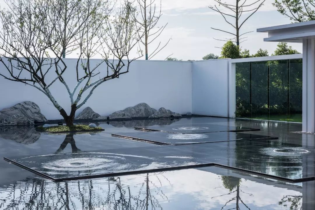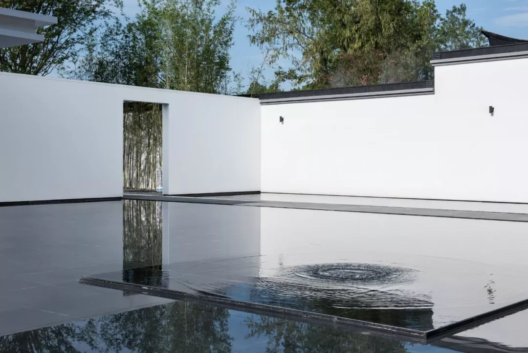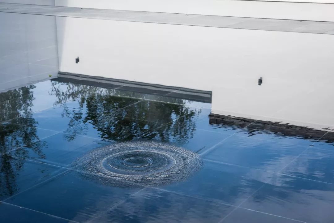 為實現(xiàn)最好的漣漪效果,池底鋪裝必須使用黑色拋光面的材質(zhì)。池底鋪裝的顏色和表面處理方式,直接決定了【漣漪可見不可見】。水池反射能力越強,漣漪的效果越明顯。水池材料的選擇上,例如整石拋光,中國黑石材拋光,樹脂類材料拋光。